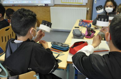 Atelier pré-cinéma en mars 2021 avec le cinéma Le Central de Colomiers dans la classe de CM2 de l’école Alain Savary à Colomiers.